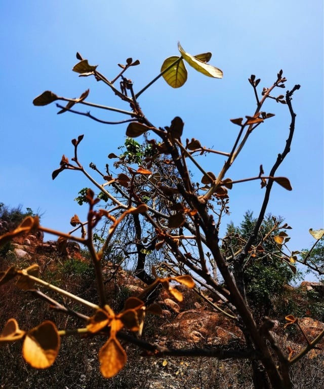 Butea monosperma is a small to medium sized deciduous tree which belongs to family Fabaceae. The tree is otherwise called Dhak, Palash, Flame of the Forest. Tree is woody and grows up to the height of 15 ft. Being a deciduous, it sheds leaves during summer. Trees are commonly found in tropical and sub tropical parts of countries like India, Nepal, Bangladesh, Sri Lanka, Burma, Tailand, Malasia, Etc.