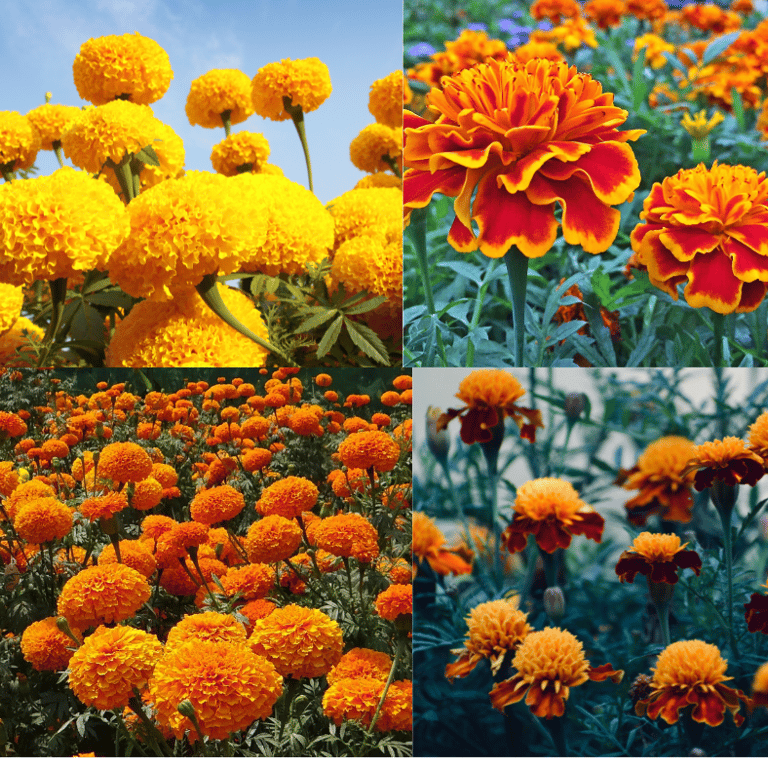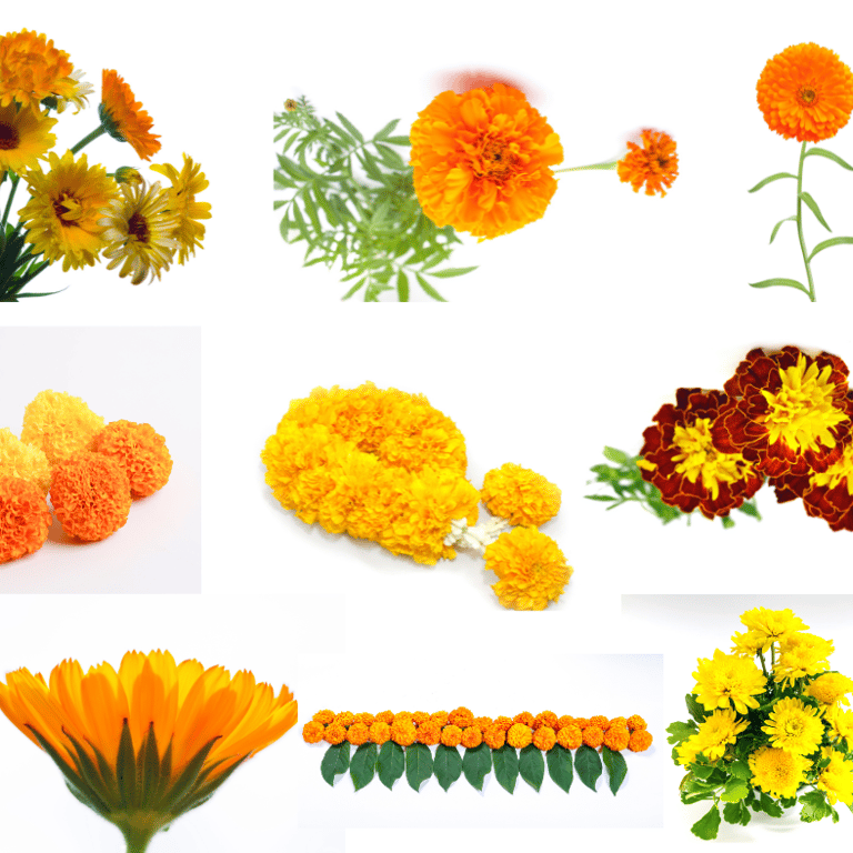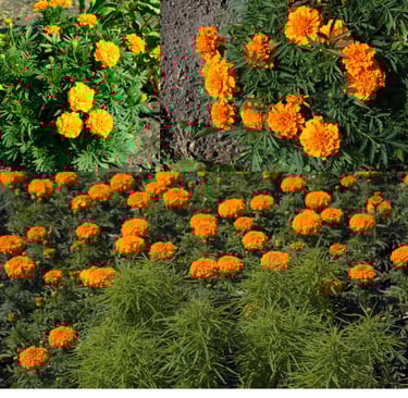 Tagetes erecta: These are popular as Mexican Marigold ( African Marigold). Taller in stature and erect type, grow up to a height of 75-90 cm. Known to produce bigger flowers of brighter yellow or orange colors. More commonly used in decorative, ornamental and festive purposes.