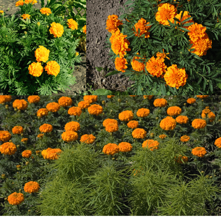 Tagetes patula: This is commonly called as French Marigold. These are for producing small, red or yellow or orange flowers. Plants are bushy type and spreading and shorter in stature.
